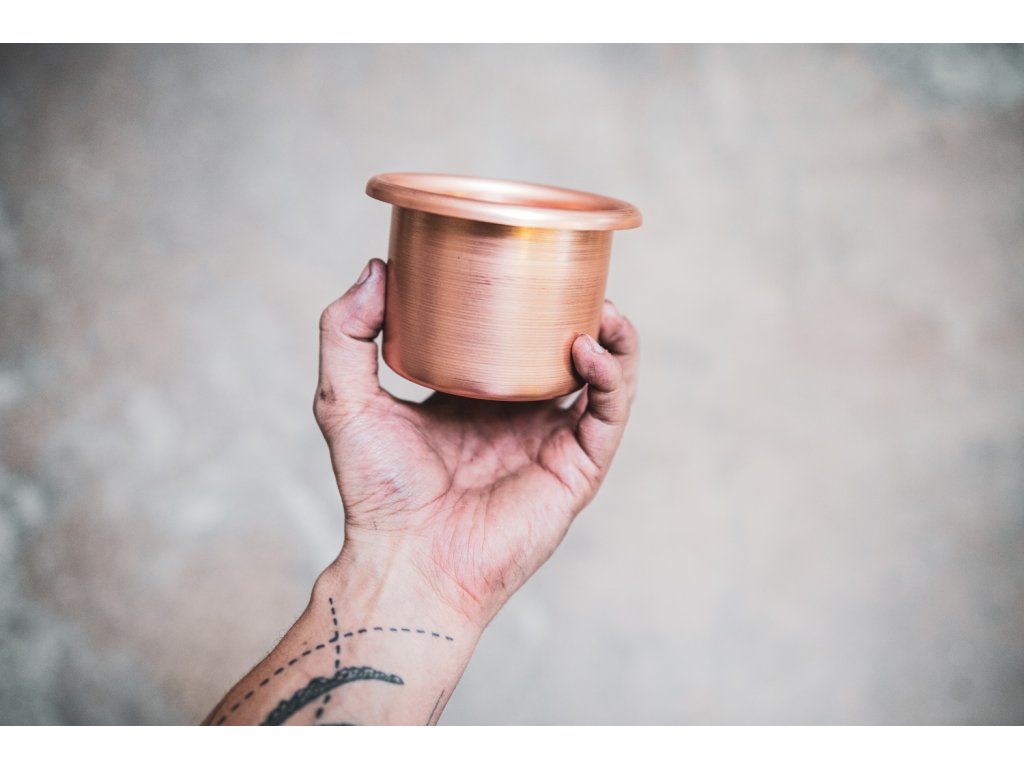 Použitá měď je od začátku do konce zpracovaná u nás v dílně, od stříhání materiálu přes tlačení až po finální broušení.