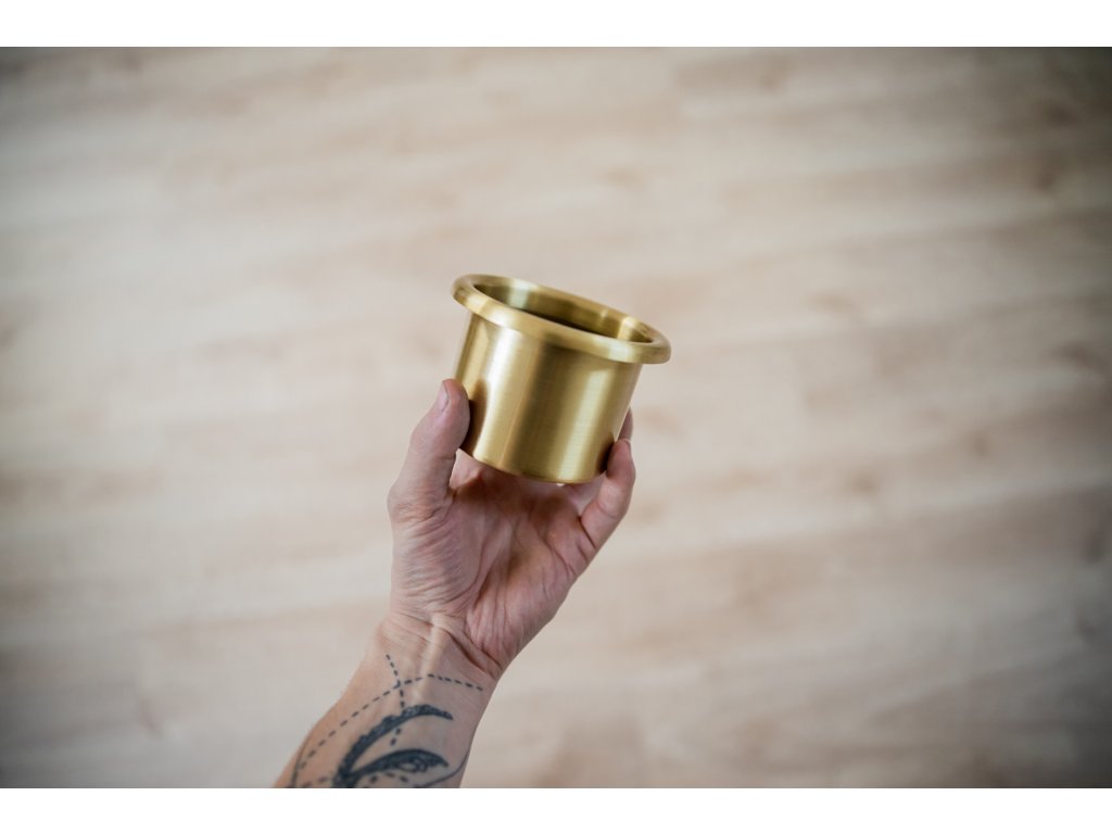 Použitá mosaz je od začátku do konce zpracovaná u nás v dílně, od stříhání materiálu přes tlačení až po finální broušení.